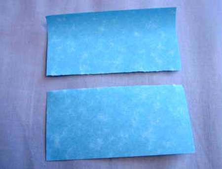 کاغذی را که برای کاردستی خود انتخاب کرده اید را از وسط ببرید. به طوری که دو مستطیل کشیده بدست آورید.