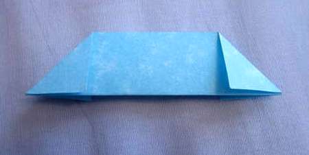 گوشه های کاغذ را همانند تصویر به سمت بیرون تا کنید به صورتی که گوشه ها با خط پایین مماس شود.